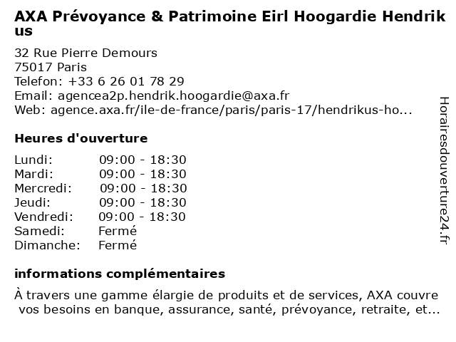 1 AXA Prévoyance & Patrimoine Olivier Freulon (Distance: 0,00 km) 32 Rue Pierre Demours, 75017 Paris assurance décès, assurance entreprise, assurance epargne, assurance invalidité, assurance patrimoine, assurance profession libérale, assurance protection juridique, assurance prévoyance, assurance santé, assurance vie, axa, freulon, olivier, patrimoine, prévoyance 2 AXA Prévoyance & Patrimoine (Distance: 0,03 km) 23 avenue Niel, 75017 Paris assurance, axa, patrimoine, prevoyance, prévoyance, retraite, santé 3 AXA Prévoyance & Patrimoine Stephane Rose (Distance: 0,25 km) 176 Boulevard Pereire, 75017 Paris assurance décès, assurance entreprise, assurance epargne, assurance invalidité, assurance patrimoine, assurance profession libérale, assurance protection juridique, assurance prévoyance, assurance santé, assurance vie, axa, patrimoine, prévoyance, rose, stephane 4 Référence Patrimoine (Distance: 0,42 km) 29 rue Guillaume Tell, 75017 Paris cabinet, conseil, gestion, patrimoine, référence 5 Hytanis Patrimoine (Distance: 0,46 km) 17 rue Margueritte, 75017 Paris conseil, finance, fiscalité, gestion, hytanis, patrimoine, placement 6 |