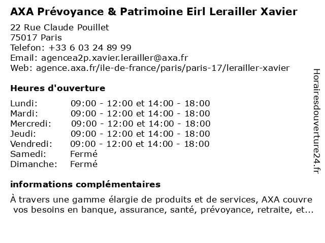 | Lundi | 09:00-12:00 et 14:00-18:00 |