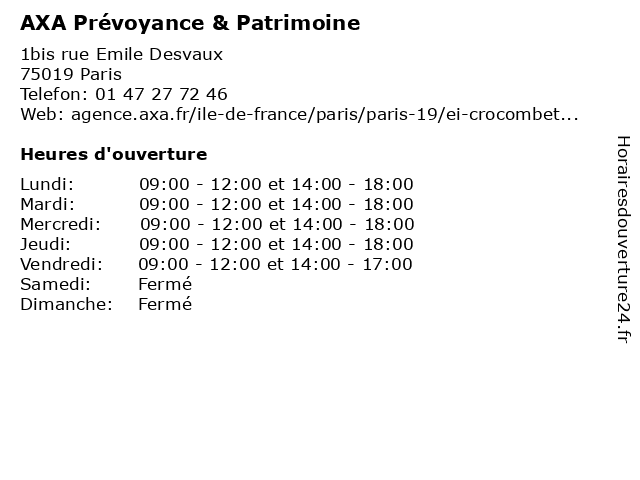 | Mardi | 09:00-12:00 et 14:00-18:00 |