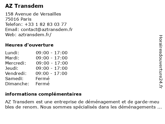 1 AZ diffusion (Distance: 1,40 km) 12 Rue de l’Est, 92100 Boulogne-Billancourt audiovisuel, az, diffusion, location matériel audiovisuel, matériel audiovisuel, vidéoprojecteur, événement 2 AZ Projet (Distance: 6,38 km) 57 Rue d'Amsterdam, 75008 Paris az, editeur, gestion, intégrée, logiciels, projet 3 AZ Nettoyage et services (Distance: 6,44 km) 12 rue Blanche, 75009 Paris appartements, az, copropriétés, et, le nettoyage des bureaux, magasins, maisons, nettoyage, services 4 AZ Foncier (Distance: 7,44 km) 150 rue du Temple, 75003 Paris agence, az, foncier, gestion, immobilier, location, transaction, vente 5 AZ Déménagement (Distance: 7,86 km) 35 Rue de Lyon, 75012 Paris az, déménagement, déménageur, paris, service 6 Orpi - AZ Transactions (Distance: 8,35 km) 83 Rue Ordener, 75018 Paris az, immobiliere, orpi, services, transactions |