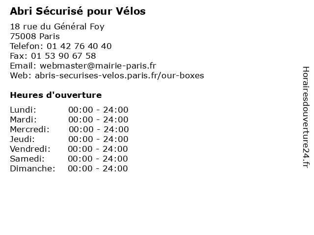 1 Abri Sécurisé pour Vélos (Distance: 0,50 km) 38 rue de Liège, 75008 Paris abonnement, abri, abris, pour, sécurisé, sécurité, vélos 2 Abri Sécurisé pour Vélos (Distance: 1,09 km) 21 rue Jacquemont, 75017 Paris abonnement, abri, abris, pour, sécurisé, sécurité, vélos 3 Abri Sécurisé pour Vélos (Distance: 1,67 km) 3 rue Marsollier, 75002 Paris abonnement, abri, abris, pour, sécurisé, sécurité, vélos 4 Abri Sécurisé pour Vélos (Distance: 2,11 km) 21 rue Bellefond, 75009 Paris abonnement, abri, abris, pour, sécurisé, sécurité, vélos 5 Abri Sécurisé pour Vélos (Distance: 2,20 km) 8 B Rue de la Comète, 75007 Paris abonnement, abri, abris, pour, sécurisé, sécurité, vélos 6 Abri Sécurisé pour Vélos (Distance: 2,65 km) 6 rue d'Alexandrie, 75002 Paris abonnement, abri, abris, pour, sécurisé, sécurité, vélos |