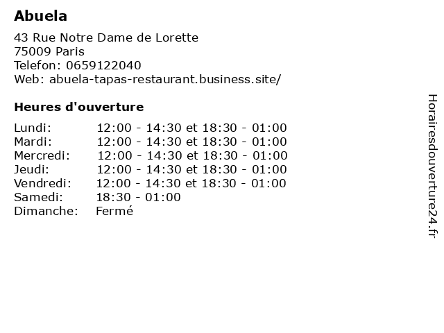 | Samedi | 18:30-01:00 |