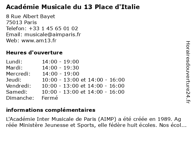Termes de recherche pour Académie Musicale du 13 Place d'Italie:du, d'italie, place, 13, musicale, académie |
