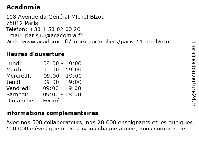 5 Acadomia (Distance: 5,53 km) 172 Avenue Jean Jaures, 75019 Paris a la personne, acadomia, cours de maths, services 6 Acadomia (Distance: 7,89 km) 10 Rue Frémicourt, 75015 Paris a la personne, acadomia, cours de maths, services |
