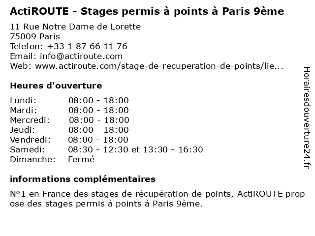 | Samedi | 08:30-12:30 et 13:30-16:30 |