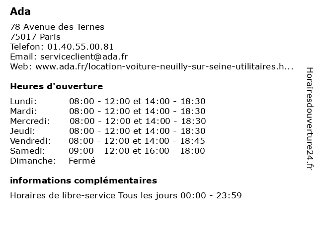 | Lundi | 08:00-12:00 et 14:00-18:30 |