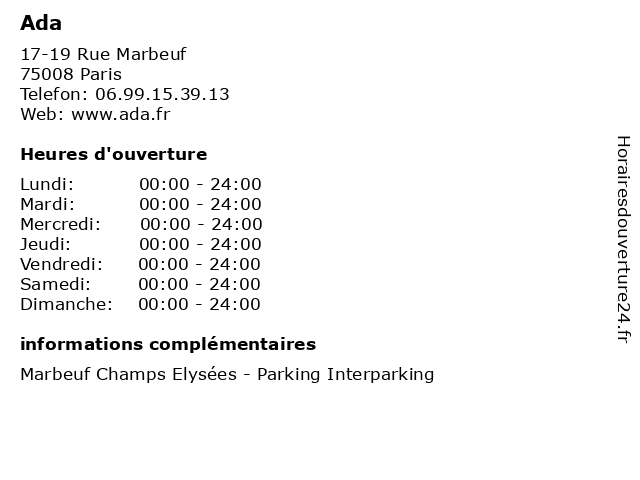 | Samedi | 00:00-24:00 |