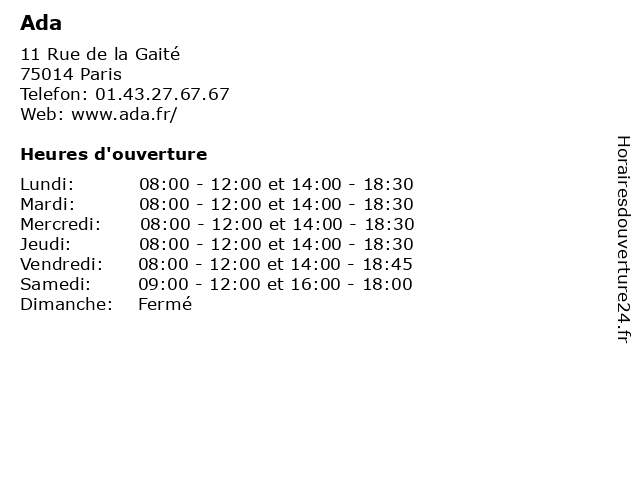 | Lundi | 08:00-12:00 et 14:00-18:30 |