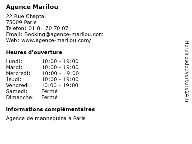 1 Marilou B. Conseils (Distance: 0,63 km) 20 Rue Yvonne le Tac, 75018 Paris agence, b., conseil, conseils, image, marilou, relooking 2 Maître Marilou Falomi - Avocate (Distance: 1,88 km) 40 Rue de Courcelles, 75008 Paris avocat, avocate, droit, falomi, marilou, maître, négociation 3 Maître Marilou Lepage – Avocat Pénaliste Paris (Distance: 3,73 km) 2 Rue Des Deux Ponts, 75004 Paris avocat, lepage, marilou, maître, paris, pénaliste 4 Marilou Mahé - Diététicienne (Distance: 13,00 km) 11 Avenue de Clermont Tonnerre, 93600 Aulnay-sous-Bois alimentation, dieteticien, diététicienne, mahé, marilou, nourriture, sante 5 Martens & Heads (Distance: 0,65 km) 47 Rue de Liège, 75008 Paris agence, heads, mannequins, martens, modèles, publicitaires 6 Women Management (Distance: 1,05 km) 3 Rue Meyerbeer, 75009 Paris agence, management, mannequins, modèles, publicitaires, women |