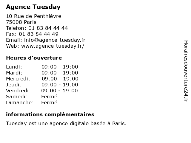| Mardi | 09:00-19:00 |
