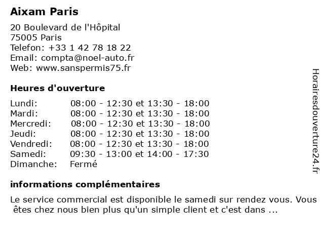 Lundi | 08:00-12:30 et 13:30-18:00 |