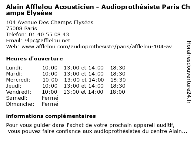 Termes de recherche pour Alain Afflelou Acousticien - Audioprothésiste Paris Champs Elysées:champs, paris, elysees, alain, afflelou, acousticien, audioprothésiste, audiologie, clinique médicale |