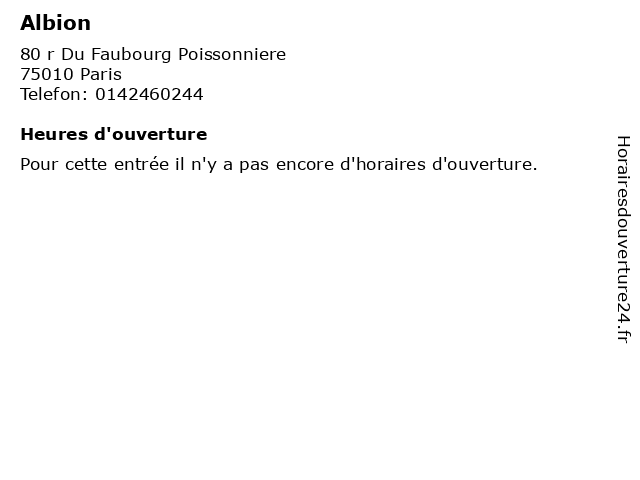 1 Hôtel France-Albion (Distance: 0,78 km) 11 Rue Notre Dame de Lorette, 75009 Paris albion, france, hôtel 2 Hôtel d'Albion (Distance: 2,41 km) 15 Rue de Penthièvre, 75008 Paris chambres, d'albion, hébergement, hôtel, service |
