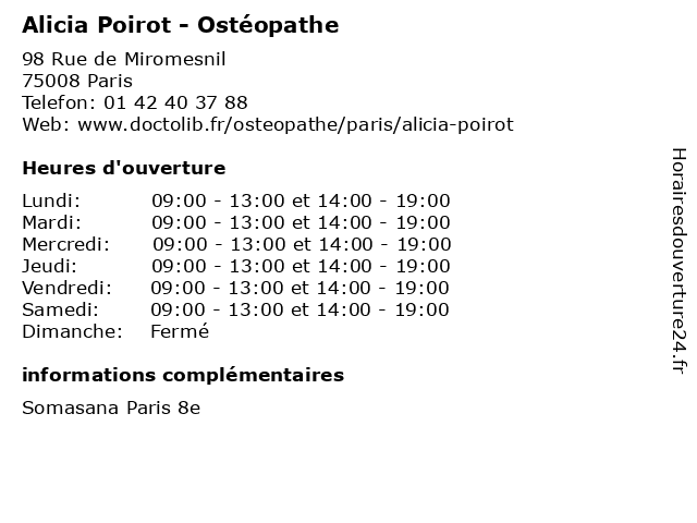 Termes de recherche pour Alicia Poirot - Ostéopathe:med, medecine, alicia, secretariat, traitement, docteur, médecin, consultation, ostéopathe, poirot |