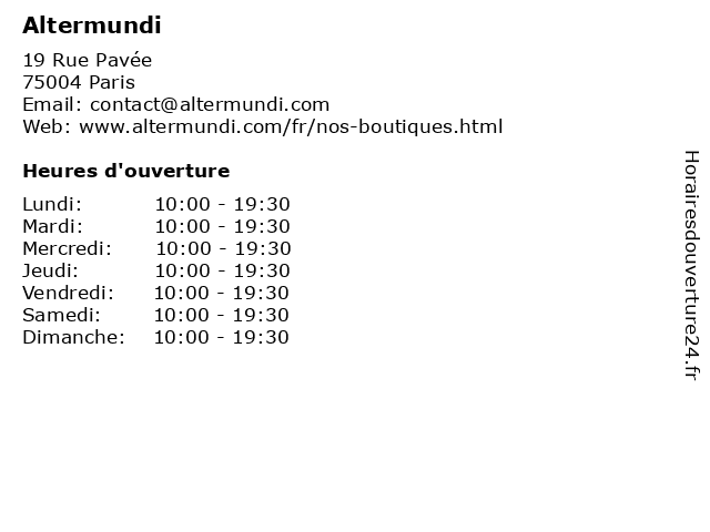 1 Altermundi (Distance: 0,79 km) 5 boulevard du Temple, 75003 Paris a table, accessoires, altermundi, cadeaux, enfants, femme, homme, mode 2 Altermundi (Distance: 1,17 km) 39 Rue de Charonne, 75011 Paris a table, accessoires, altermundi, cadeaux, enfants, femme, homme, mode 3 Altermundi (Distance: 1,21 km) 140 voie Georges Pompidou, 75001 Paris altermundi, enfants, maison, mode 4 Altermundi (Distance: 1,73 km) 71 rue du Faubourg Saint-Martin, 75010 Paris a table, accessoires, altermundi, cadeaux, enfants, femme, homme, mode 5 Altermundi (Distance: 2,32 km) 72 rue de Rennes, 75006 Paris accessoires, altermundi, commerce, divers, magasin, responsable, éthique 6 |