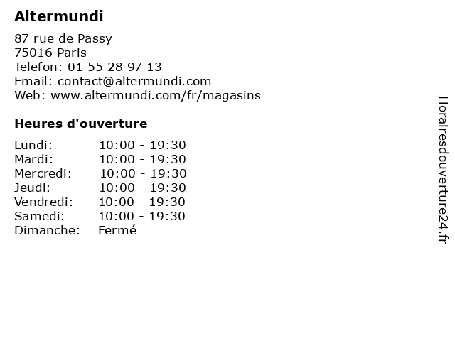 | Lundi | 10:00-19:30 |
