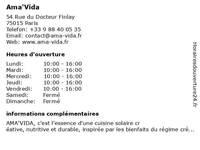 4 AMA Assurance (Distance: 5,44 km) 106 Rue lamarck, 75018 Paris ama, assurance, courtage, dommages, particulier, prévoyance, santé 5 Restaurant AMA (Distance: 6,04 km) 4 Rue Bichat, 75010 Paris ama, bar, bistrot, brasserie, café, restaurant, restauration 6 |