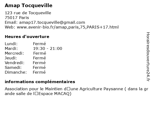 1 Babilou Paris Tocqueville (Distance: 0,08 km) 109 Rue de tocqueville, 75017 PARIS babilou, paris, tocqueville 2 Le Tocqueville (Distance: 0,24 km) 55 Boulevard Pereire, 75017 Paris bar, brasserie, café, le, restaurant, restauration, tocqueville 3 Square Alexis Clérel de Tocqueville (Du 29 octobre au 28 février) (Distance: 0,29 km) 89 rue de Tocqueville, 75017 Paris 28, 29, alexis, au, clérel, de, du, février, jardin, octobre, parc, square, tocqueville 4 Square Alexis Clérel de Tocqueville (Du 01 au 24 mars) (Distance: 0,29 km) 89 rue de Tocqueville, 75017 Paris 01, 24, alexis, au, clérel, de, du, jardin, mars, parc, square, tocqueville 5 Square Alexis Clérel de Tocqueville (Du 25 mars au 29 avril et septembre) (Distance: 0,29 km) 89 rue de Tocqueville, 75017 Paris 25, 29, alexis, au, avril, clérel, de, du, et, jardin, mars, parc, septembre, square, tocqueville 6 Square Alexis Clérel de Tocqueville (Du 30 avril au 31 août) (Distance: 0,29 km) 89 rue de Tocqueville, 75017 Paris 30, 31, alexis, août, au, avril, clérel, de, du, jardin, parc, square, tocqueville |