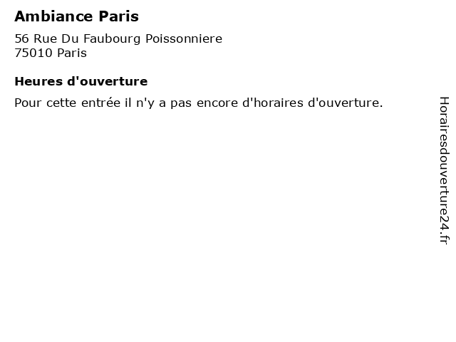 2 Ambiance (Distance: 3,30 km) 76-78 avenue des Champs Elysées, 75008 Paris ambiance, bains, déco, linge, lumières, miroirs, mobilier, parfum 3 Ambiance Toilettage (Distance: 4,97 km) 8 Rue Duchefdelaville,, 75013 Paris ambiance, chiens, salons, toilettage 4 Ambiance Déjeuners (Distance: 5,46 km) 131 Rue Anatole France, 92300 Levallois-Perret ambiance, dejeuners, déjeuners, fast, good, restaurants 5 6 |