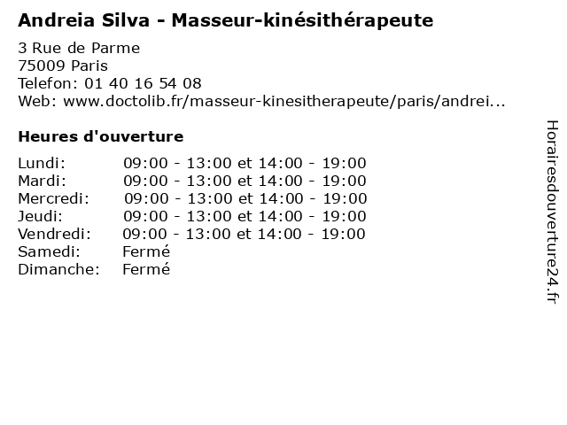 | Mardi | 09:00-13:00 et 14:00-19:00 |