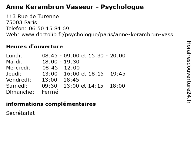 | Lundi | 08:45-09:00 et 15:30-20:00 |