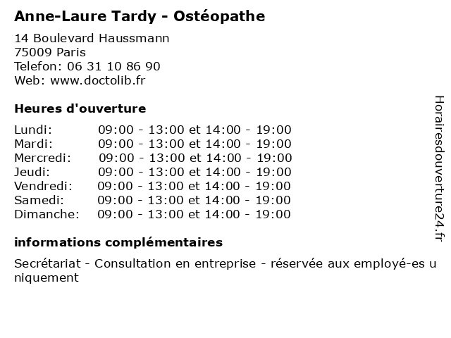 | Mardi | 09:00-13:00 et 14:00-19:00 |