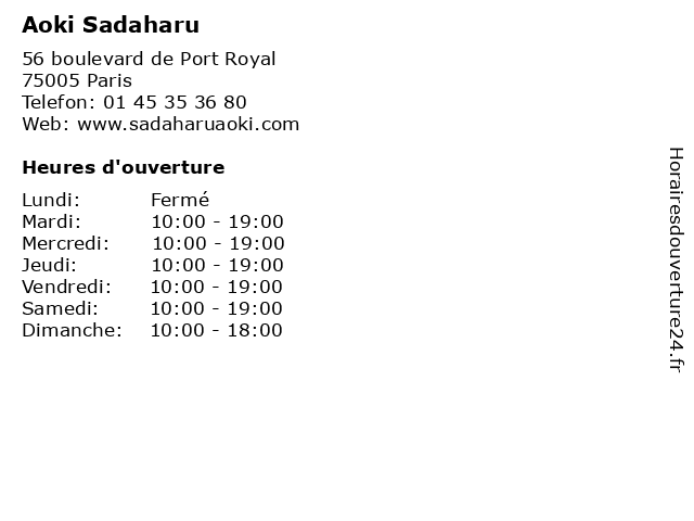 1 Aoki Sadaharu (Distance: 1,62 km) 35 rue de vaugirard, 75006 Paris aoki, bakery, bread, pastries, sadaharu 2 Aoki Sadaharu (Distance: 3,05 km) 25 rue Pérignon, 75015 Paris aoki, bakery, bread, pastries, sadaharu 3 Jean Millet Par Aoki (Distance: 3,78 km) 103 Rue Saint Dominique, 75007 Paris aoki, jean, millet, par, restaurants 5 Vival (Distance: 0,34 km) 5 Rue de Bazeilles, 75005 Paris bread, deli, fish shop, gas bottles, photocopy, removing packages, vival, wine cellar 6 Vival (Distance: 0,66 km) 260 Rue Saint-Jacques, 75005 Paris bread, deli, fish shop, gas bottles, photocopy, removing packages, vival, wine cellar |