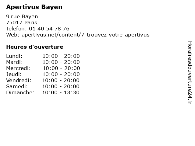 | Dimanche | 10:00-13:30 |