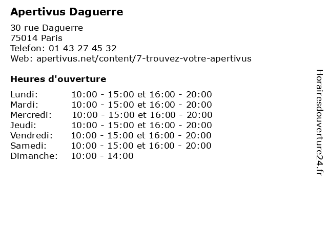 | Mercredi | 10:00-15:00 et 16:00-20:00 |
