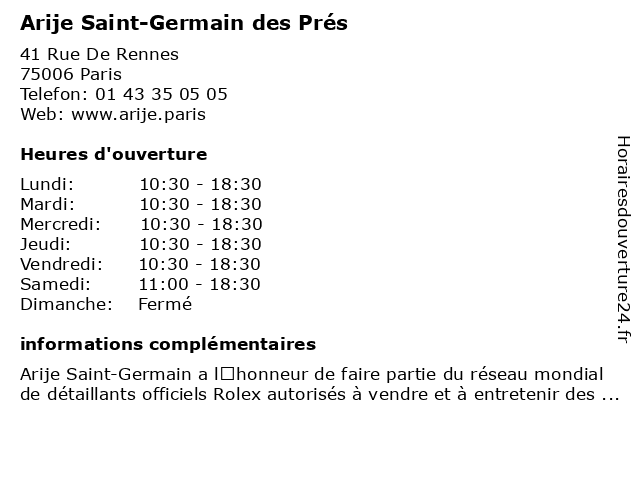 | Samedi | 11:00-18:30 |