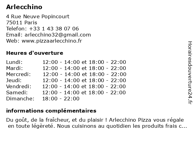| Samedi | 12:00-14:00 et 18:00-22:00 |