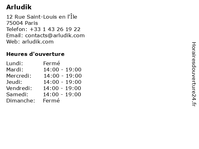 | Samedi | 14:00-19:00 |