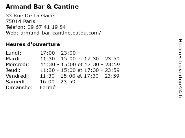 | Vendredi | 11:30-15:00 et 17:30-23:59 |