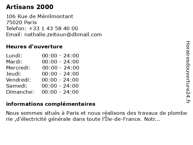 | Samedi | 00:00-24:00 |