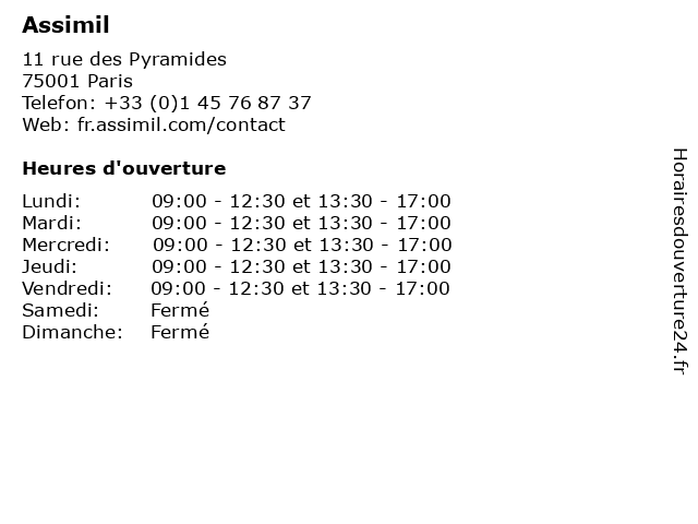 | Lundi | 09:00-12:30 et 13:30-17:00 |