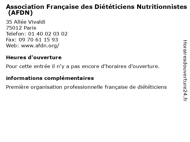 | Appeler Association Française des Diététiciens Nutritionnistes (AFDN) | |