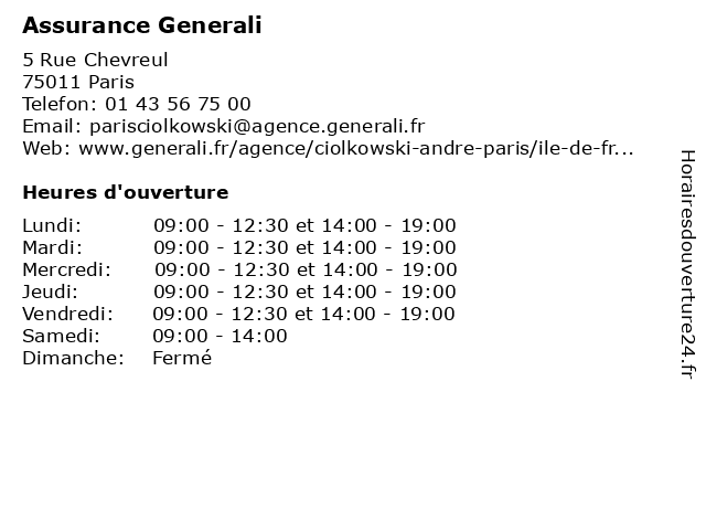 1 Assurance Generali (Distance: 1,40 km) 35 Rue Louis Braille, 75012 Paris assurance, assurances, generali, services 2 Assurance Generali (Distance: 2,95 km) 89 rue Albert, 75013 Paris assurance, assurances, generali, services 3 Assurance Generali (Distance: 3,69 km) 79 Avenue Pasteur, 93100 Montreuil assurance, assurances, generali, services 4 Assurance Generali (Distance: 3,80 km) 38 Rue de Fontenay, 94305 Vincennes assurance, assurances, generali, services 6 Assurance Generali (Distance: 6,77 km) 1 Villa Croix Nivert, 75015 Paris assurance, assurances, generali, services |