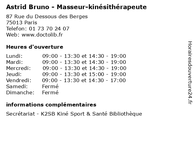 | Lundi | 09:00-13:30 et 14:30-19:00 |