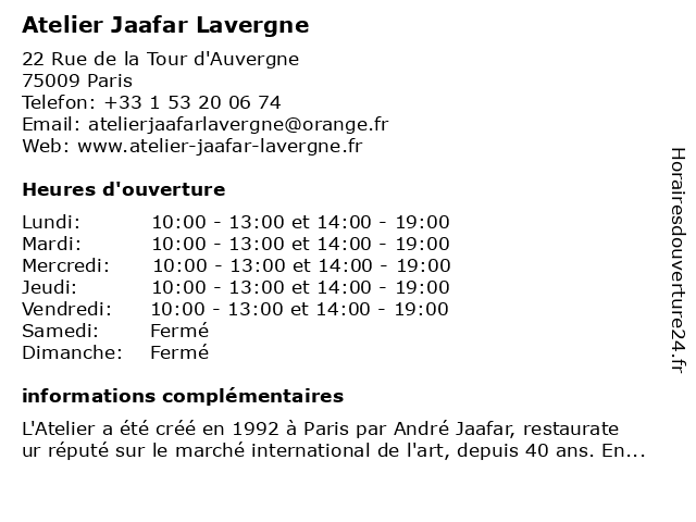 Lundi | 10:00-13:00 et 14:00-19:00 |