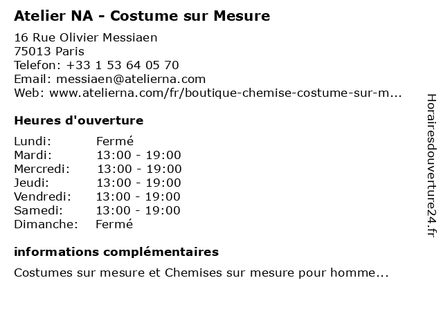 1 Atelier NA - Costume sur Mesure (Distance: 4,19 km) 114 Rue de Rennes, 75006 Paris atelier, cabine 3d, chemise sur mesure, costume, costume 3 pièces, costume de mariage, costume sur mesure, manteau sur mesure, mesure, na, paris, smoking sur mesure, sur, sur mesure, vêtements pour hommes 2 Atelier NA - Costume sur Mesure (Distance: 4,32 km) 90 Rue Saint Honoré, 75001 Paris atelier, cabine 3d, chemise sur mesure, costume, costume 3 pièces, costume de mariage, costume sur mesure, manteau sur mesure, mesure, na, paris, smoking sur mesure, sur, sur mesure, vêtements pour hommes 3 Atelier NA - Costume sur Mesure (Distance: 5,30 km) 14 Rue Gaillon, 75002 Paris atelier, cabine 3d, chemise sur mesure, costume, costume 3 pièces, costume de mariage, costume sur mesure, manteau sur mesure, mesure, na, paris, smoking sur mesure, sur, sur mesure, vêtements pour hommes 4 Atelier NA - Costume sur Mesure (Distance: 5,66 km) 42 Rue la Fayette, 75009 Paris atelier, cabine 3d, chemise sur mesure, costume, costume 3 pièces, costume de mariage, costume sur mesure, manteau sur mesure, mesure, na, paris, smoking sur mesure, sur, sur mesure, vêtements pour hommes 5 Atelier NA - Costume sur Mesure (Distance: 6,02 km) 3 Rue Chauveau Lagarde, 75008 Paris atelier, cabine 3d, chemise sur mesure, costume, costume 3 pièces, costume de mariage, costume sur mesure, manteau sur mesure, mesure, na, paris, smoking sur mesure, sur, sur mesure, vêtements pour hommes 6 Atelier NA - Costume sur Mesure (Distance: 6,94 km) 148 Boulevard Haussmann, 75008 Paris atelier, cabine 3d, chemise sur mesure, costume, costume 3 pièces, costume de mariage, costume sur mesure, manteau sur mesure, mesure, na, paris, smoking sur mesure, sur, sur mesure, vêtements pour hommes |