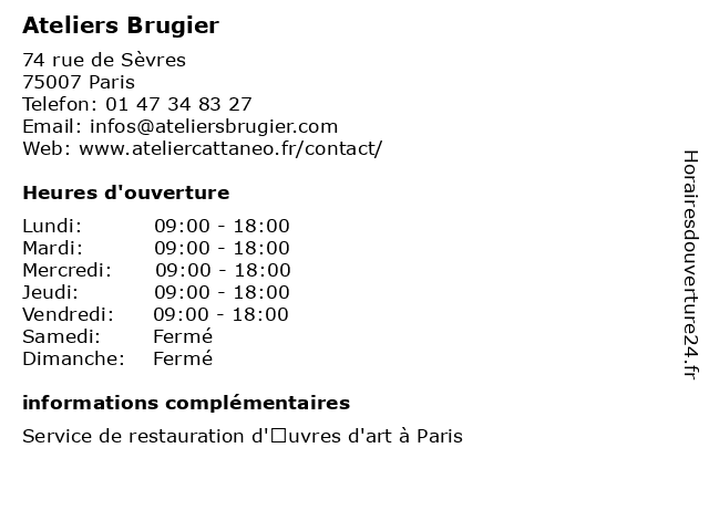 1 Chéret - Ateliers d'Art Liturgique (Distance: 0,09 km) 7 Rue Mayet, 75006 Paris ateliers, chéret, d'art, liturgique 3 Ateliers Beaux-Arts Littré (6e) (Distance: 0,46 km) 6 rue Littré, 75006 Paris 6e, arts, ateliers, ateliers beaux-arts, beaux, equipement, joyeuse, l'heure, littré, livre, médiathèque, services 4 Mr.Bricolage Paris 14 Ateliers Gaîté (Distance: 1,04 km) 68-80 Avenue du Maine, 75014 Paris 14, ateliers, gaîté, mr.bricolage, paris 6 Ateliers Terre Et Feu (Distance: 2,20 km) 37 bis Villa d'Alésia, 75014 Paris art, ateliers, et, feu, graphique, image, paris, siège, social, terre, école |