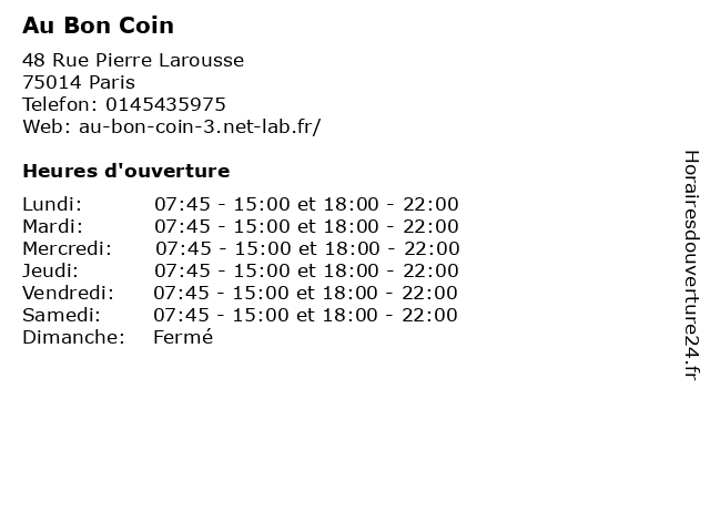 | 1 Au Bon Coin (Distance: 0,78 km) 85 Rue Brancion, 75015 Paris au, bar, bistro, bistrot, bon, brasserie, café, coin, restaurant, restauration 4 Au Bon Coin (Distance: 6,30 km) 19 Rue Denis Papin, 94200 Ivry-sur-Seine au, bar, bistro, bistrot, bon, brasserie, café, coin, restaurant, restauration 5 Au Bon Coin (Distance: 7,26 km) 49 Rue des Cloys, 75018 Paris au, bar, bistro, bistrot, bon, brasserie, café, coin, pub, restaurant, restauration, resto 6 Au Bon Coin (Distance: 7,31 km) Rue Auguste Blanqui, 94400 Vitry Sur Seine bon, cango, carrillo, coin, maribel, perla, restaurants, thomas |