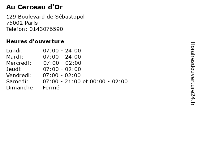 | Vendredi | 07:00-02:00 |