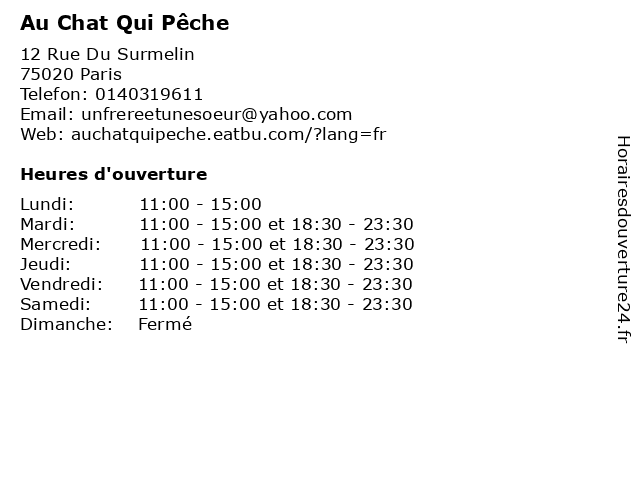 | Mardi | 11:00-15:00 et 18:30-23:30 |