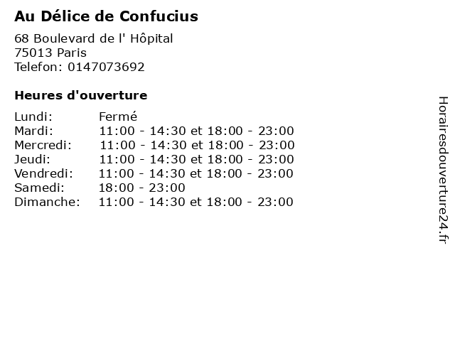 | Mardi | 11:00-14:30 et 18:00-23:00 |