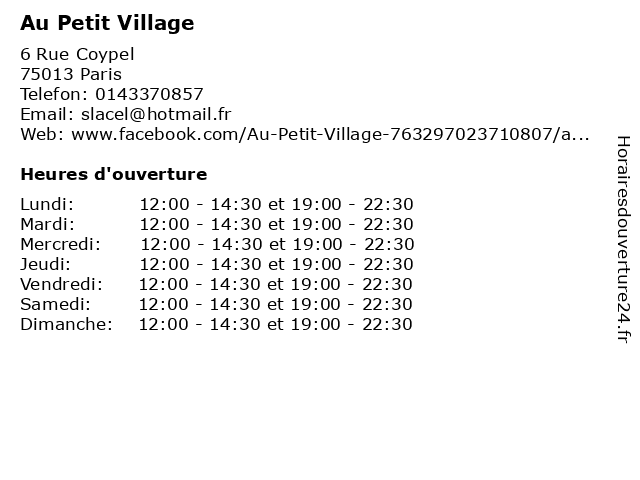 | Mardi | 12:00-14:30 et 19:00-22:30 |