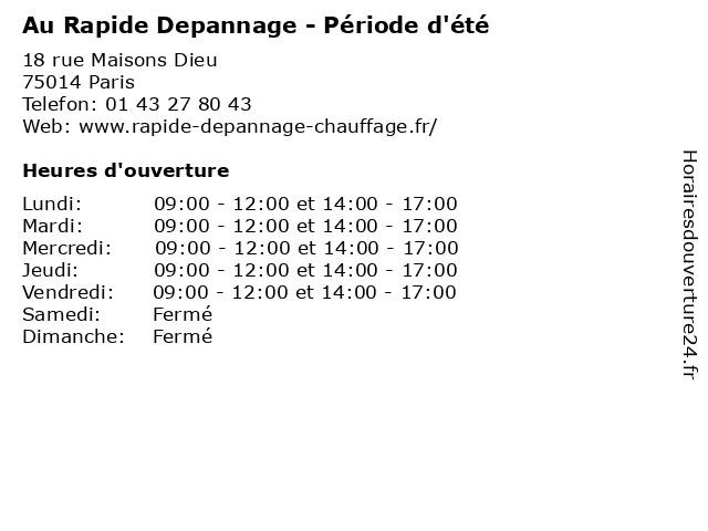 1 Au Rapide Depannage - Période d'été (Distance: 9,28 km) 5 rue de Metz, 94700 Maisons-Alfort au, d'été, depannage, entretien, plombiers, période, rapide 2 Au Rapide Depannage - Période d'hiver (Distance: 0,00 km) 18 rue Maisons Dieu, 75014 Paris au, d'hiver, depannage, entretien, plombiers, période, rapide 4 Rapide Informatique (Distance: 0,99 km) 28 Rue d'Alésia, 75014 Paris accessoires, adaptateurs, câble, informatique, rapide 5 Eurasia Tours (été) (Distance: 1,39 km) 15 Rue de la Santé, 75013 Paris agence, circuits, eurasia, hôtel, réservations, séjours, tours, vacances, vol, voyages, été 6 Église Saint-Jacques-du-Haut-Pas - Vacances d'été (Distance: 1,63 km) 252 Rue Saint-Jacques, 75005 Paris christianisme, chrétien, d'été, du, eglise, haut, jacques, les, libre, pas, pasteur, pendant, religion, saint, vacances, église |