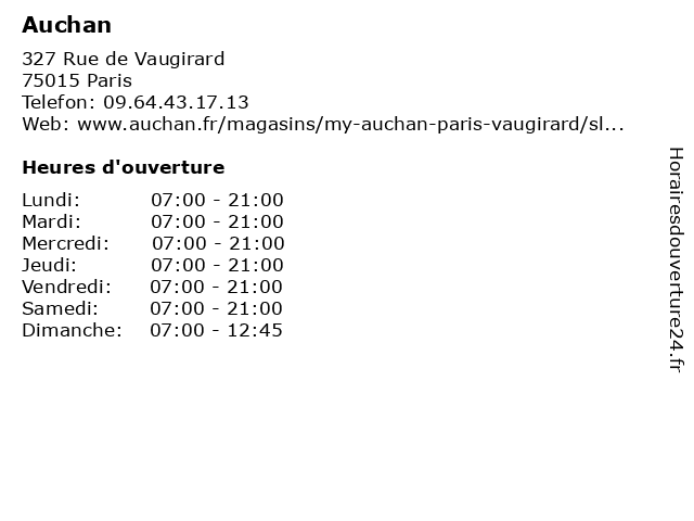 1 Auchan (Distance: 1,51 km) 191 Rue d Alesia, 75014 Paris auchan, hypermarché, la nourriture, supermarchés 2 Auchan (Distance: 3,23 km) 160 Avenue de Paris, 92320 Chatillon auchan, hypermarché, la nourriture, supermarchés 3 Auchan (Distance: 3,87 km) 1 Rue Aristide Briand, 92130 Issy-Les-Moulineaux alimentaire, auchan, grande surface 4 Auchan (Distance: 5,09 km) 31 Boulevard Gouvion St Cyr, 75017 Paris auchan, hypermarché, la nourriture, supermarchés 5 Auchan (Distance: 5,32 km) 92 Rue de Levis, 75017 Paris auchan, hypermarché, la nourriture, supermarchés 6 Auchan (Distance: 5,91 km) 70 rue Jean Perrin, 92330 Sceaux, auchan, hypermarché, la nourriture, supermarchés |