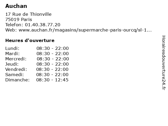 1 Auchan (Distance: 3,47 km) 8 Place Léon Blum, 75011 Paris auchan, hypermarché, la nourriture, supermarchés 2 Auchan (Distance: 5,31 km) 92 Rue de Levis, 75017 Paris auchan, hypermarché, la nourriture, supermarchés 3 Auchan (Distance: 5,47 km) 121 Rue de Reuilly, 75012 Paris auchan, hypermarché, la nourriture, supermarchés 4 Auchan (Distance: 5,60 km) 28 Avenue du General de Gaulle, 93541 Bagnolet accesoires, auchan, cafe, chausseres, enfants, homme, mode femmes, restaurant 5 Auchan (Distance: 5,66 km) 46 Boulevard de Reuilly, 75012 Paris auchan, hypermarché, la nourriture, supermarchés 6 Auchan (Distance: 7,05 km) 31 Boulevard Gouvion St Cyr, 75017 Paris auchan, hypermarché, la nourriture, supermarchés |