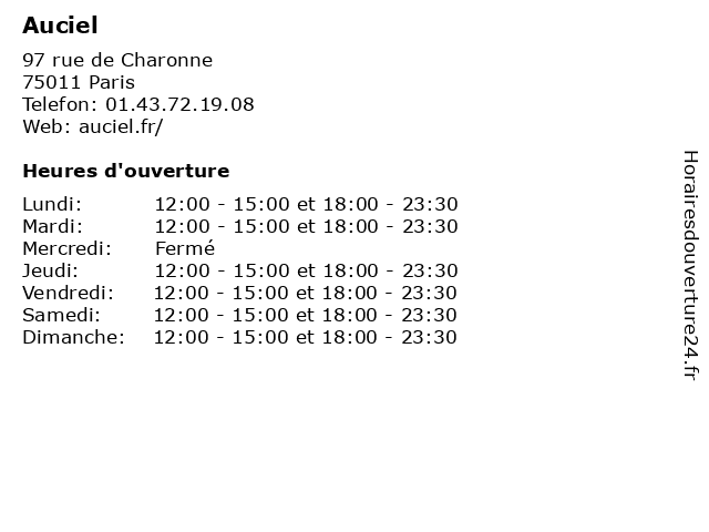 | Dimanche | 12:00-15:00 et 18:00-23:30 |